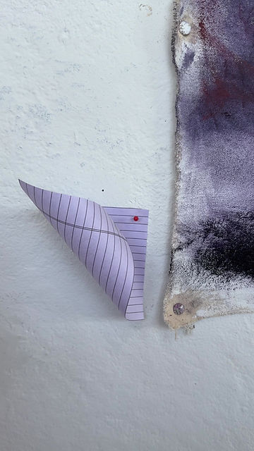 After finishing Drop and Squeeze, I was trying to figure out what to do with the edges. They had the remnants of my previous plans and I didn't think about covering them while playing with the impasto. They seemed unprofessional but I didn't want to cover them. I was feeling connected to the unprofessional look after being told repeatedly that I am unprofessional in recent months. It felt important to honor that feeling in this painting of my breasts and belly. I let the edges sit unaddressed for days while I worked on Tucked, the portrait of my friend James. Working on his portrait inspired me to pick up a black sharpie and write on the black paint. The black on black makes seeing what I wrote very difficult to see unless the light hits the letters just right. Trying to twist and turn my head to see what I wrote was wonderfully frustrating. It reminded me of how people often look at me. My intentions can be difficult to see without the right lighting and a willingness to engage actively with a desire to understand me. To provide another opportunity to see and understand me and the painting, I hid the words in second location, under the piece of paper displaying the title and details. Tucked was still wet when I was installing the work and I got some paint on my hand which led to me added a thumb print as an invitation to lift the paper. I don't know if anyone chose to lift and look.